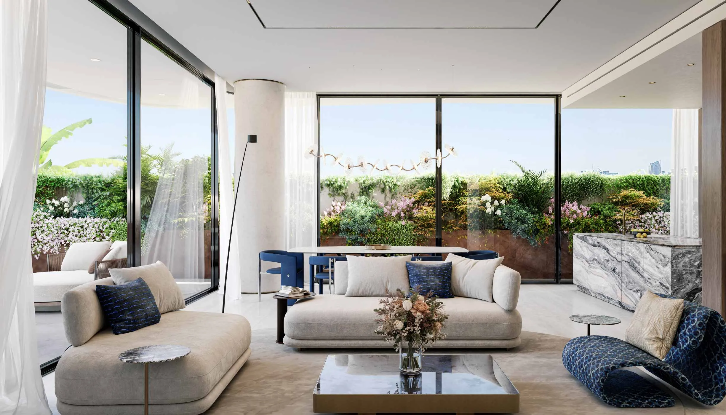In all 72 residences, natural light, views, and spatial flow are maximized by flowing architectural lines and floor-to-ceiling glass surfaces.
